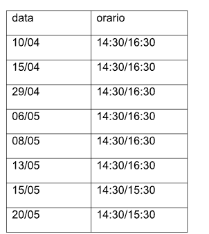 La data dell’ultima ora di lezione sarà comunicata ai corsisti in seguito