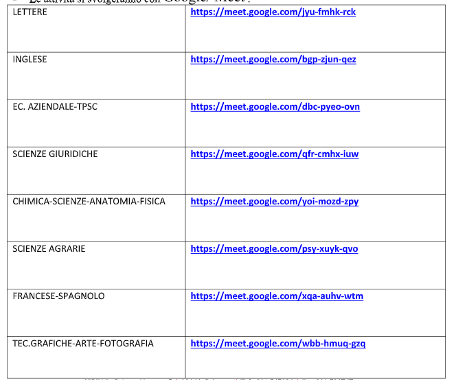 Dalle ore 16,30 alle ore 17,30 i Dipartimenti si riuniranno ,accedendo ai link di seguito indicati