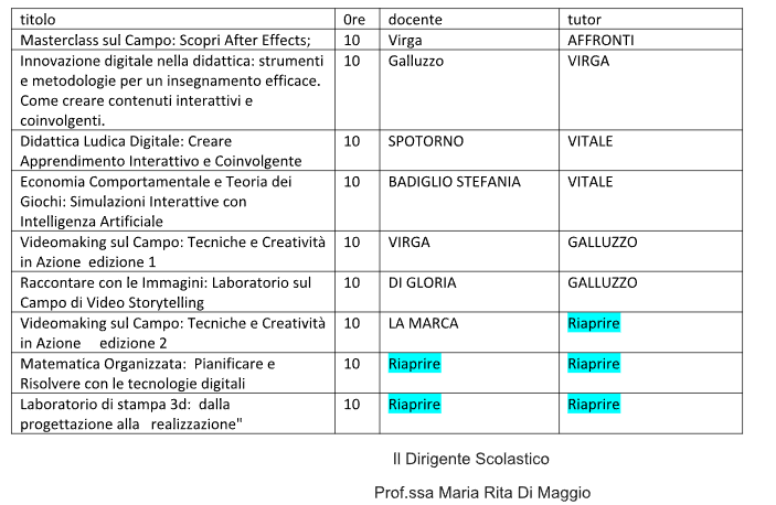 Si informano i docenti esperti e i tutor dei laboratori di seguito indicati che si può dare avvio alle