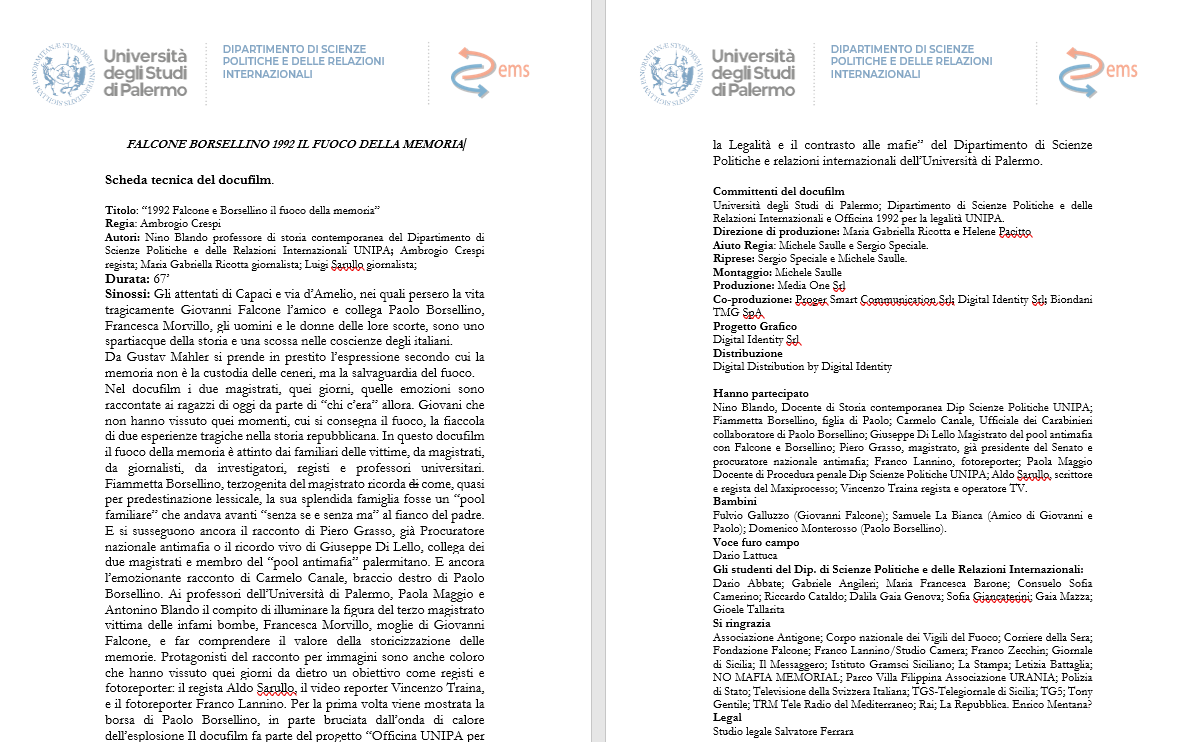Oggetto: rettifica-DOCUFILM FALCONE BORSELLINO, 1992 IL FUOCO DELLA