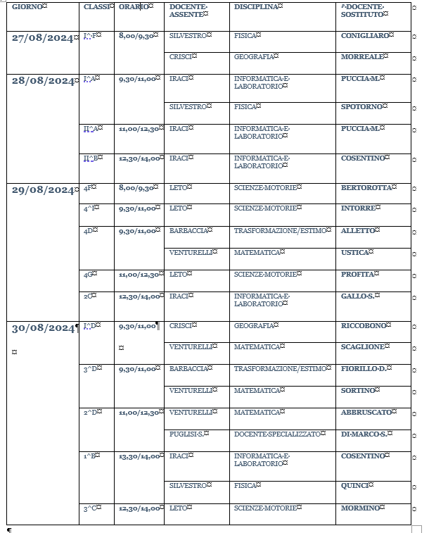 Sono nominati per gli esami degli alunni con giudizio sospeso, di cui alle circ.n.674/675, in sostituzione degli insegnanti con contratto a termine scaduto al 30/06/2024, i docenti indicati nella tabella che segue.